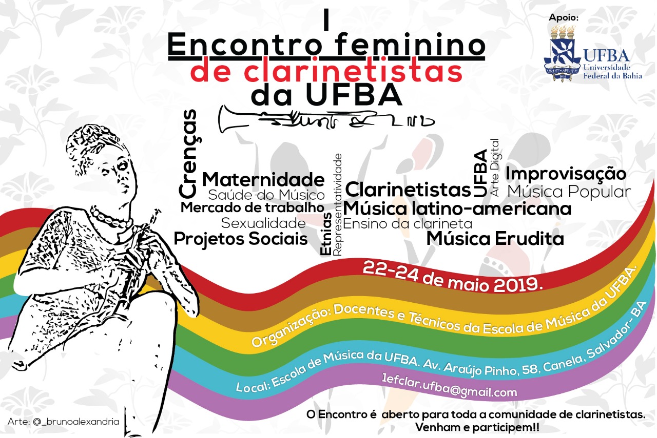 Mulheres integrantes dos Núcleos Estaduais de Orquestras Juvenis e Infantis da Bahia (NEOJIBA) marcam presença no I Encontro Feminino de Clarinetistas da UFBA, de 22 a 24 de maio de 2019. Com mesas redondas e pequenos concertos, o objetivo é aproximar mulheres instrumentistas e provocar intercâmbio entre representantes de diferentes regiões do país e instituições de ensino. O evento acontece na Escola de Música da Universidade Federal da Bahia – UFBA e tem participação gratuita.