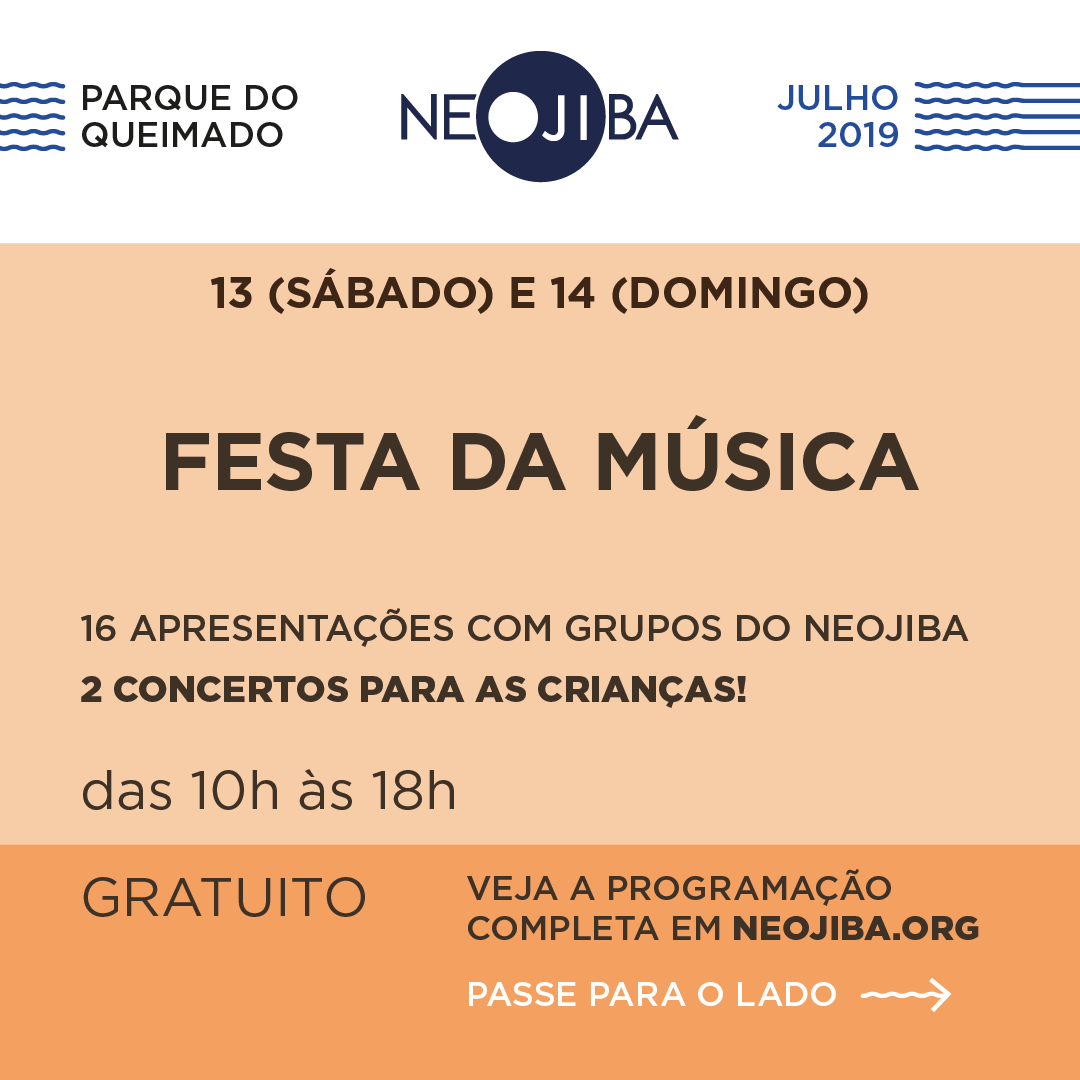 Durante todos os finais de semana deste mês de Julho/2019 os integrantes do NEOJIBA (Núcleos Estaduais de Orquestras Juvenis e Infantis da Bahia), programa da Secretaria de Justiça e Direitos Humanos do Estado, se apresentam gratuitamente no Parque do Queimado (Largo do Queimadinho, n°10-32, Soledade), em Salvador.
