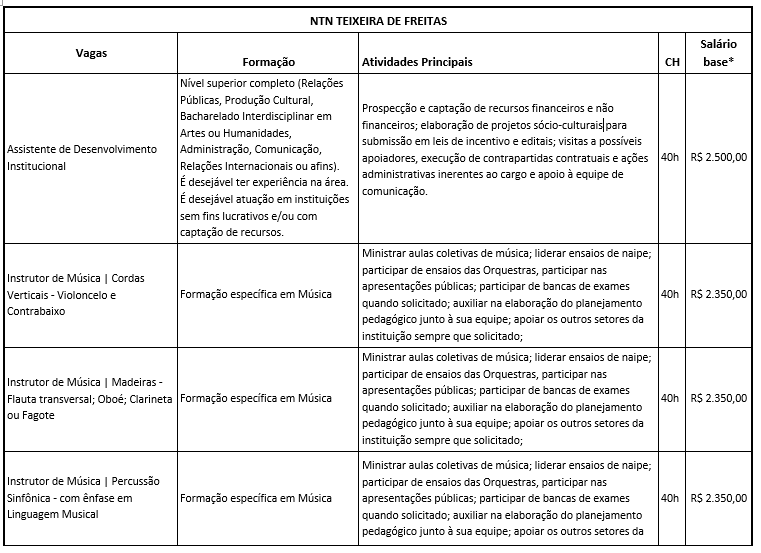 VAGAS PARA NÚCLEO TERRITORIAL DO NEOJIBA TEIXEIRA DE FREITAS