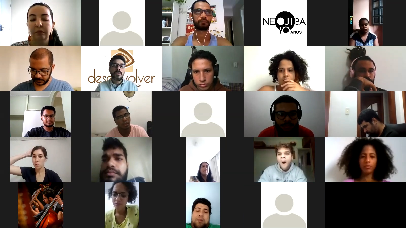 Cerca de setenta integrantes da Orquestra Dois de Julho e da Orquestra Castro Alves participaram de um bate-papo com o psicólogo Alessandro Marimpietri. O encontro, promovido pelo setor de Desenvolvimento Social, aconteceu no dia 13/4 por meio do NEOJIBA ONLINE, sistema de ensino a distância do programa. Durante a conversa, Marimpietri contou que as três saídas mais comuns que as pessoas têm encontrado para lidar com a pandemia são o pânico, a negação e o enfrentamento da realidade. E como não adianta se desesperar, nem fingir que nada de grave está acontecendo, o enfrentamento da realidade é a melhor maneira de seguirmos em frente, com a “espinha reta e o coração tranquilo”. “Nós precisamos enfrentar esse cenário, que é inédito, para nos protegermos adequadamente. A melhor saída é um enfrentamento crítico, mas esperançoso”.