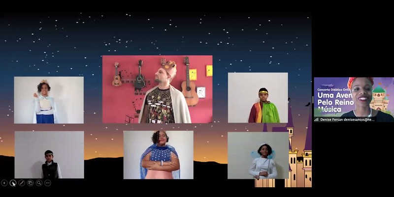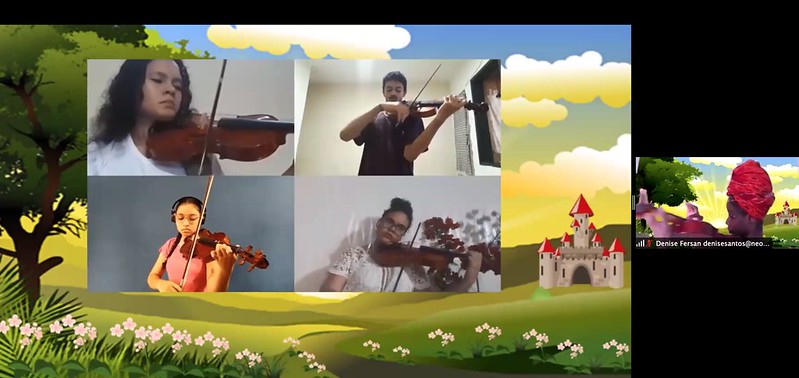 Essa jornada aconteceu na noite desta quarta-feira, 19/8, durante o concerto didático online "Uma Aventura Pelo Reino da Música", realizado pelo Núcleo Territorial NEOJIBA Feira de Santana - Antônio Gasparini. Com orientação dos instrutores, os integrantes se apresentaram e se revezaram nos papéis de reis, rainhas e fadas.