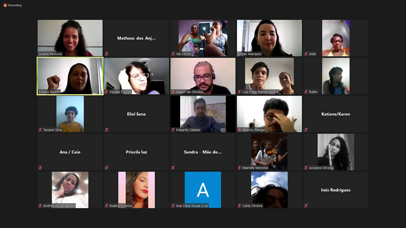 Entre os dias 25 de agosto e 2 de setembro, foram realizados dez encontros com pais e responsáveis por integrantes dos núcleos de Salvador e do interior da Bahia. "Nosso objetivo é levar informação sobre temáticas relevantes, principalmente nesse período de isolamento social, sempre com um clima de alegria, música e descontração", conta Olgair Marques, coordenadora do DS.