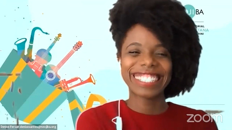 As apresentações do concerto foram divididas em cinco blocos, conduzidos com muito bom humor e carisma pela instrutora Denise Fersan. A integrante Amanda Magalhães contou que o NEOJIBA mudou a sua vida e que está sendo um norte nesse período de pandemia. "As aulas são como um guia. É muito bom estar em um programa que pensa muito na gente, independentemente de qual momento estamos vivenciando. Muito obrigada".