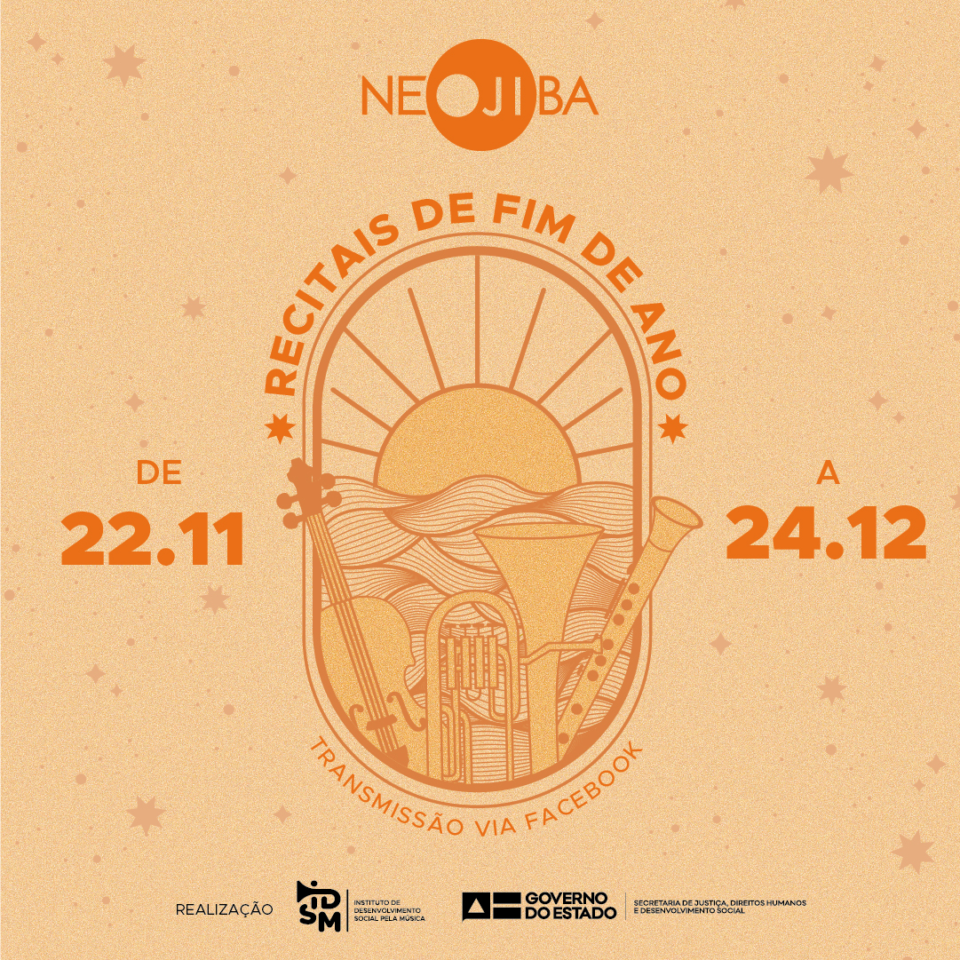 O NEOJIBA (programa social do Governo da Bahia) irá promover uma série de recitais de fim de ano entre os dias 22 de novembro e 24 de dezembro. Serão 24 apresentações, transmitidas pela página do programa no Facebook (facebook.com/programaneojiba).