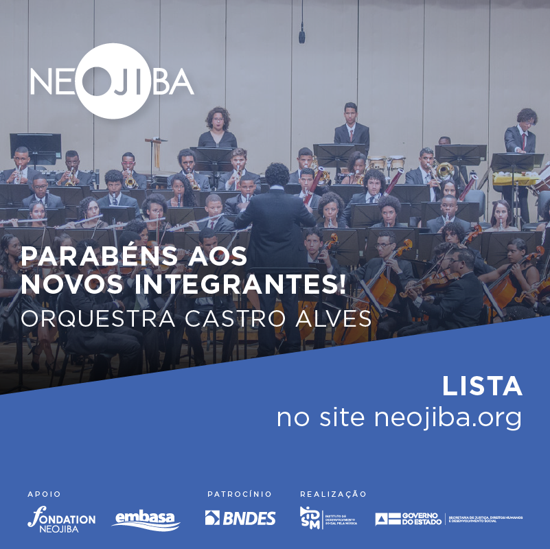 1- Os candidatos aprovados nas Orquestra 2 de Julho e na Orquestra Castro Alves devem escrever para dm@neojiba, com cópia para marcosrangel@neojiba.org, até 23 de dezembro, informando em qual das orquestras irá se inscrever.
