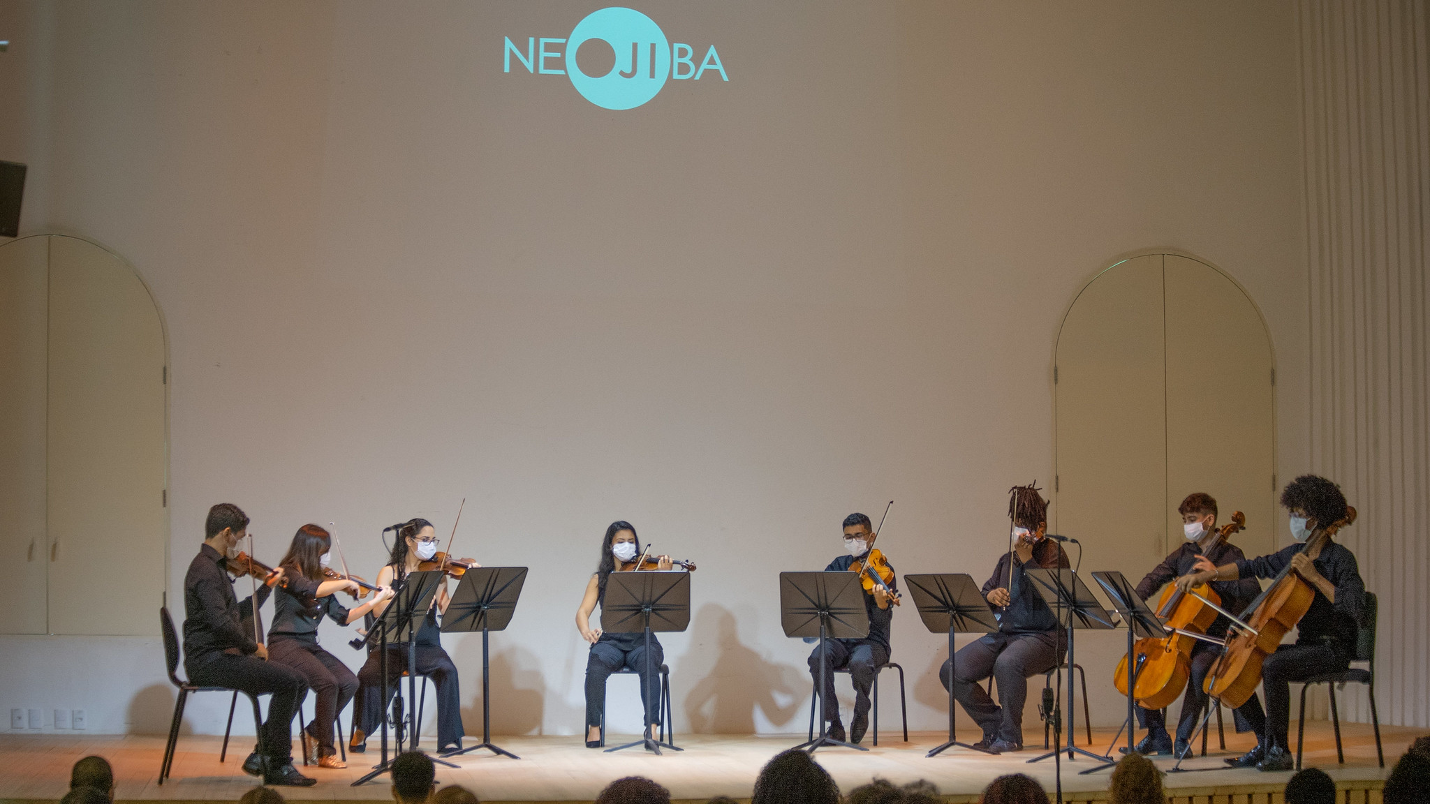 Pela primeira vez desde o início da pandemia, o NEOJIBA, programa do Governo da Bahia, realizou apresentações abertas ao público. O recital de música de câmara foi apresentado por integrantes da Orquestra 2 de Julho, do Coro Juvenil e coordenadores do programa. O evento foi realizado no Parque do Queimado, na Liberdade.