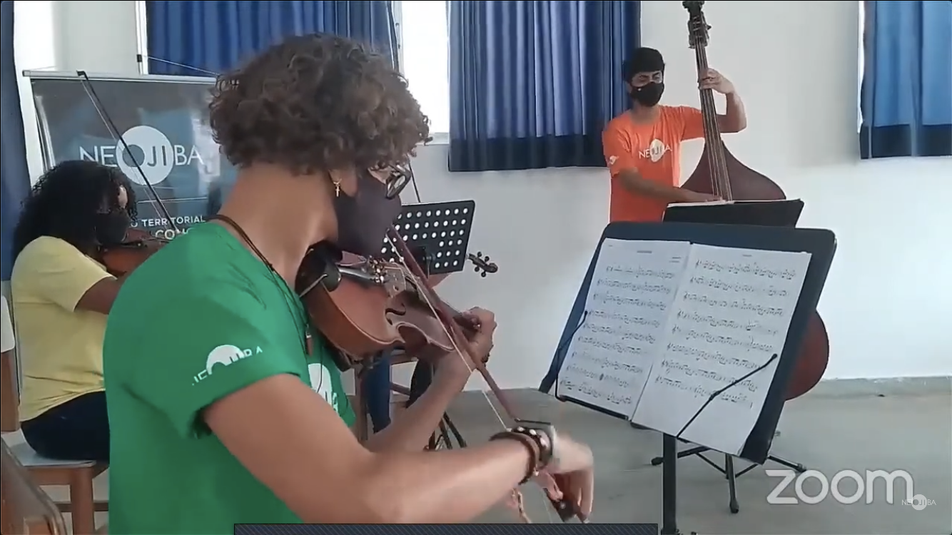 Houve ainda apresentações das turmas de Cordas Graves e Agudas. A composição “Shimbalaiê” foi gravada, presencialmente, na Casa Memorial Régis Pacheco, pelo Quinteto de Cordas do NTN, formação musical que retomou as atividades presenciais no espaço, cedido pela Prefeitura Municipal de Vitória da Conquista. As demais formações e turmas aguardam autorização do Centro de Cultura Camillo de Jesus Lima, onde o Núcleo está sediado, para retornarem na modalidade híbrida.