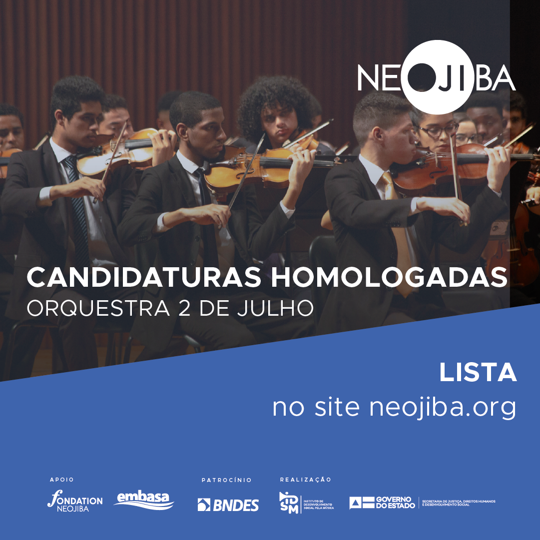 Confira a lista das candidaturas homologadas para a próxima etapa do processo seletivo da Orquestra 2 de Julho.