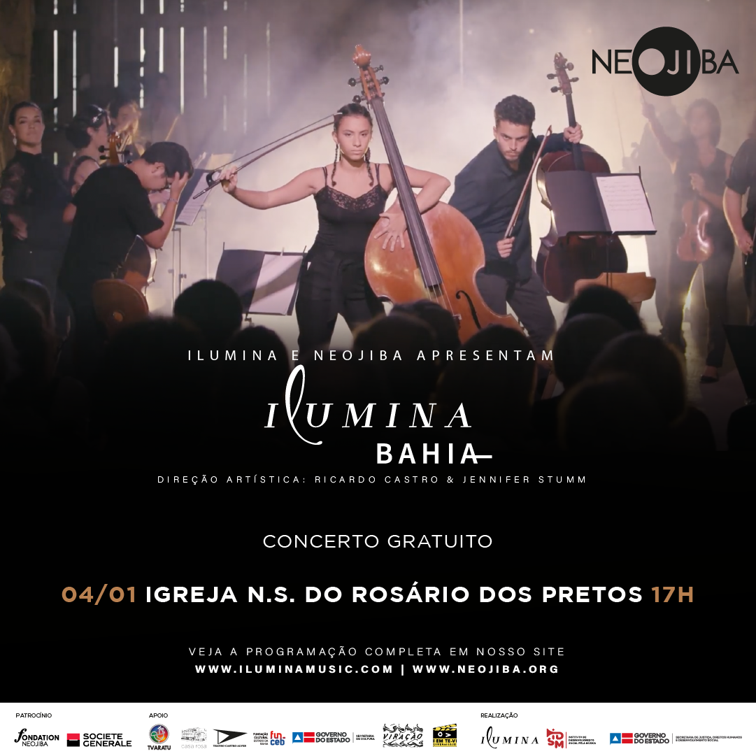 Esse é o quartoconcerto do Ilumina Bahia, que começou no dia 28 de dezembro e vai até 7 de janeiro de 2022. O Ilumina é uma das principais iniciativas de formação musical da América Latina e desembarca em Salvador pela primeira vez, a convite do NEOJIBA, programa do Governo da Bahia.