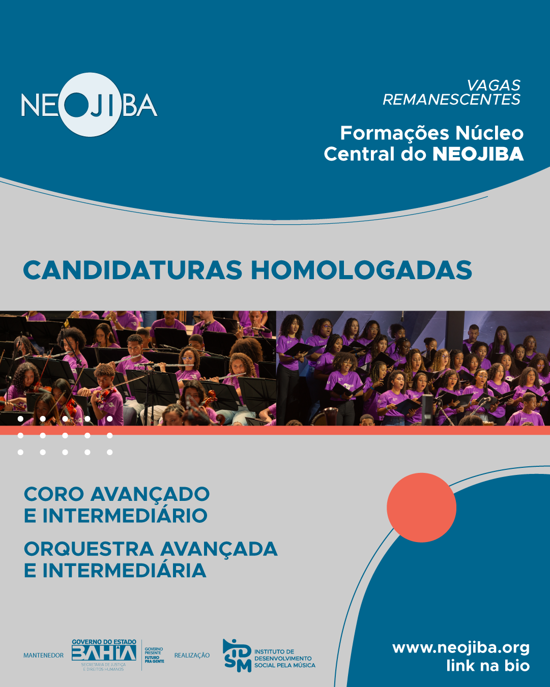 Confira a lista das candidaturas homologadas para as próximas etapas das vagas remanescentes do Núcleo Central do NEOJIBA.
