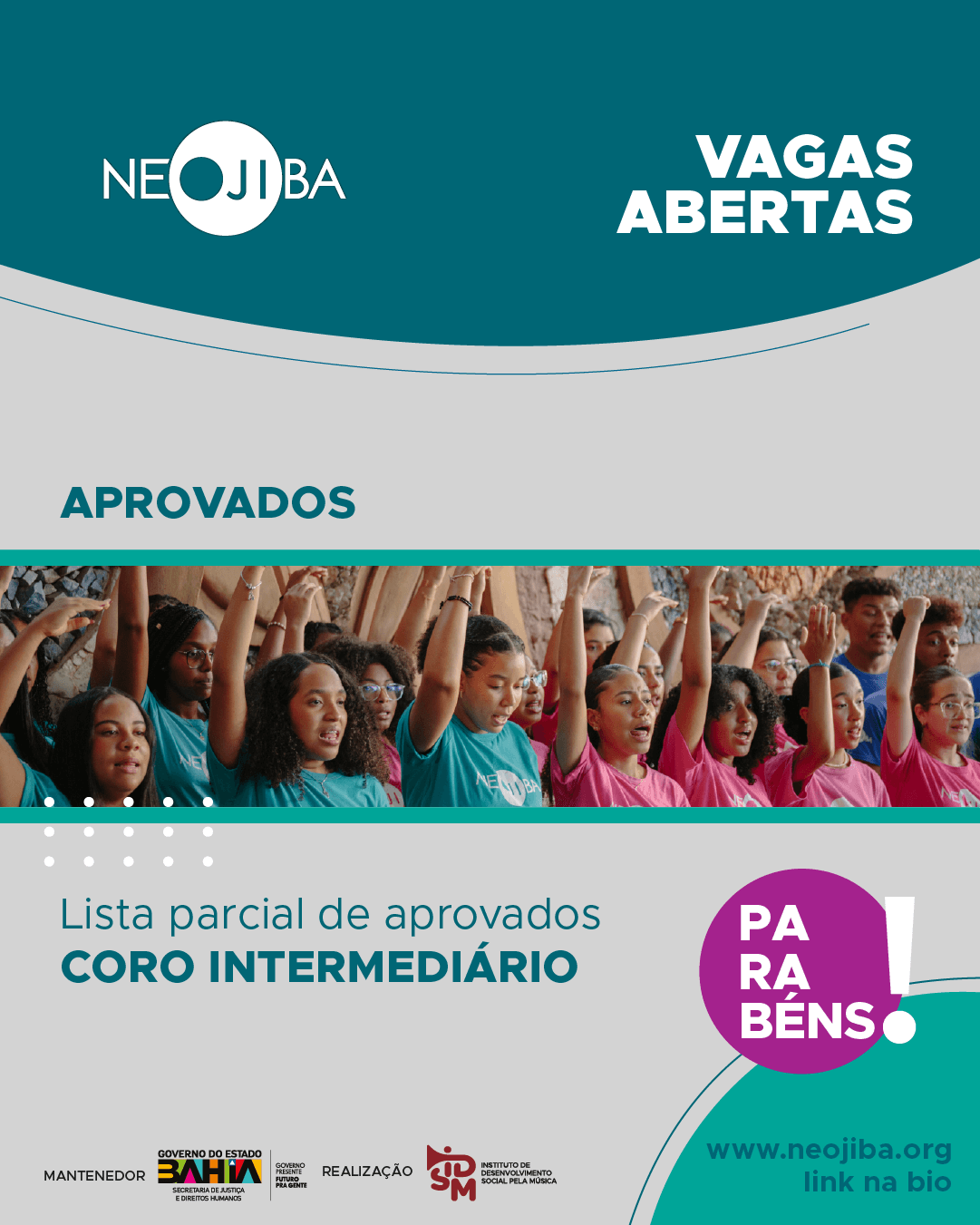 Parabéns aos aprovados e aprovados para o Coro Intermediário NEOJIBA 2026.