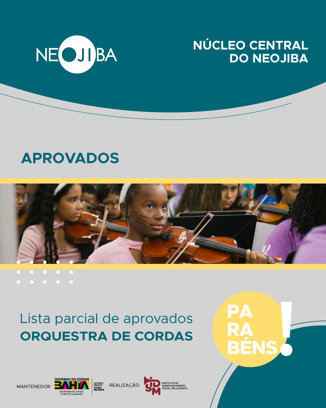 Parabéns aos aprovados e aprovadas para a Orquestra de Cordas NEOJIBA 2026.