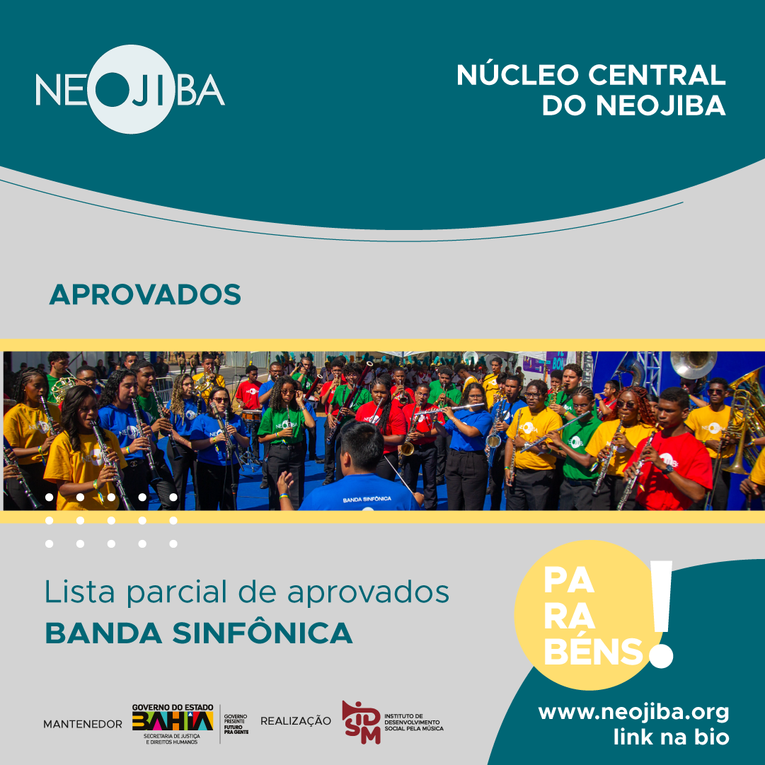 Parabéns aos aprovados e aprovadas para a Banda Sinfônica NEOJIBA 2026.