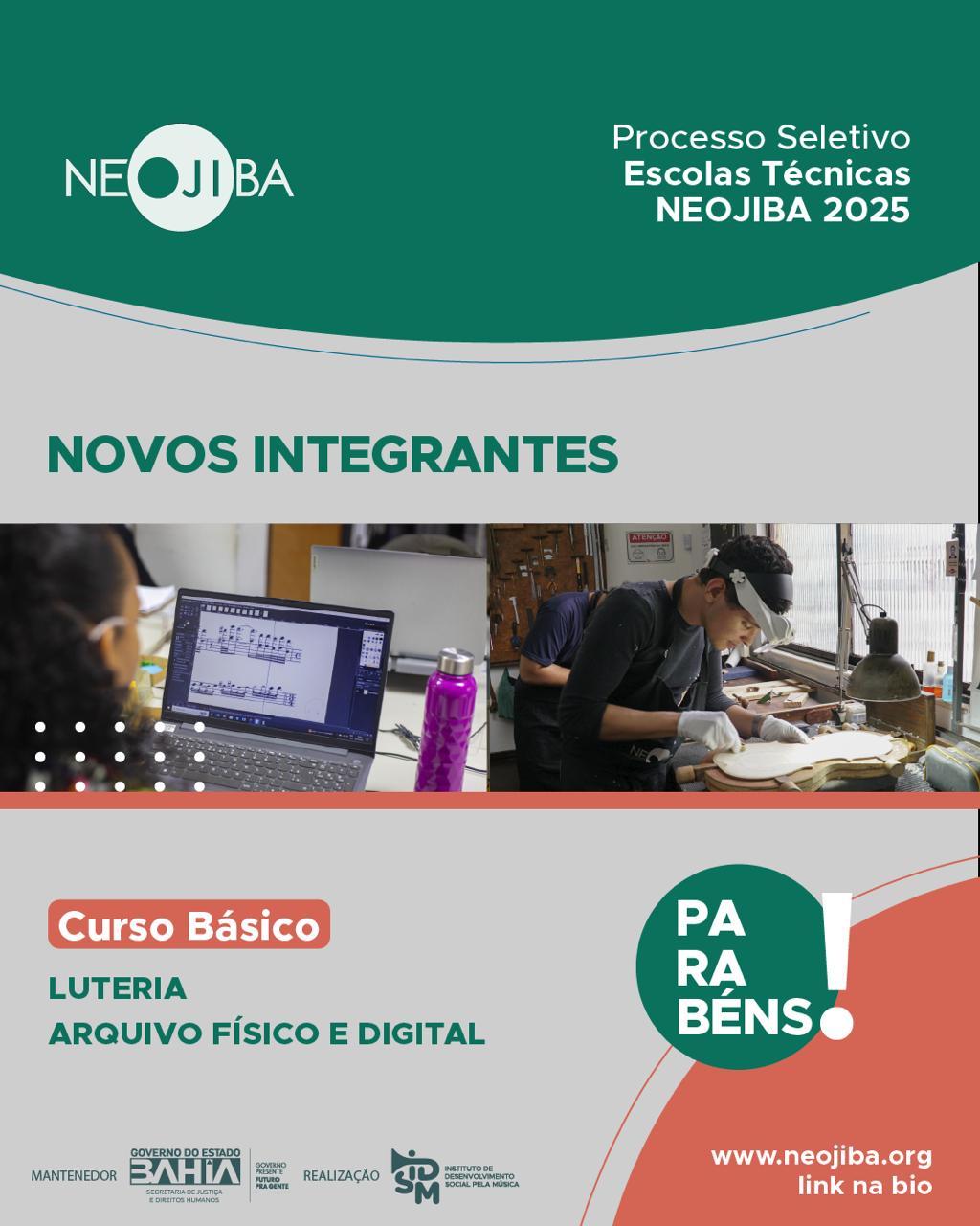 PARABÉNS AOS SELECIONADOS PARA OS CURSOS BÁSICOS NAS ESCOLAS DE LUTERIA E ARQUIVO FÍSICO E DIGITAL