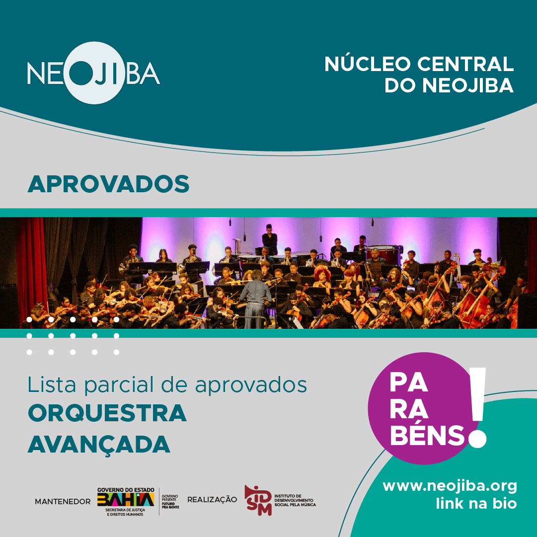 PARABÉNS AOS APROVADOS PARA A ORQUESTRA AVANÇADA