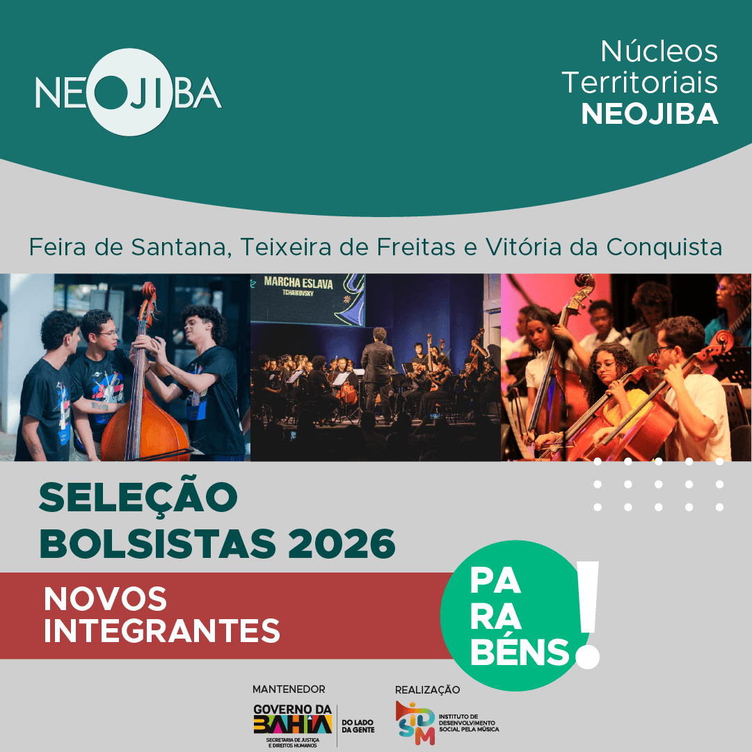Parabéns aos Bolsistas aprovados para os Núcleos do NEOJIBA em Feira de Santana, Teixeira de Freitas e Vitória da Conquista.