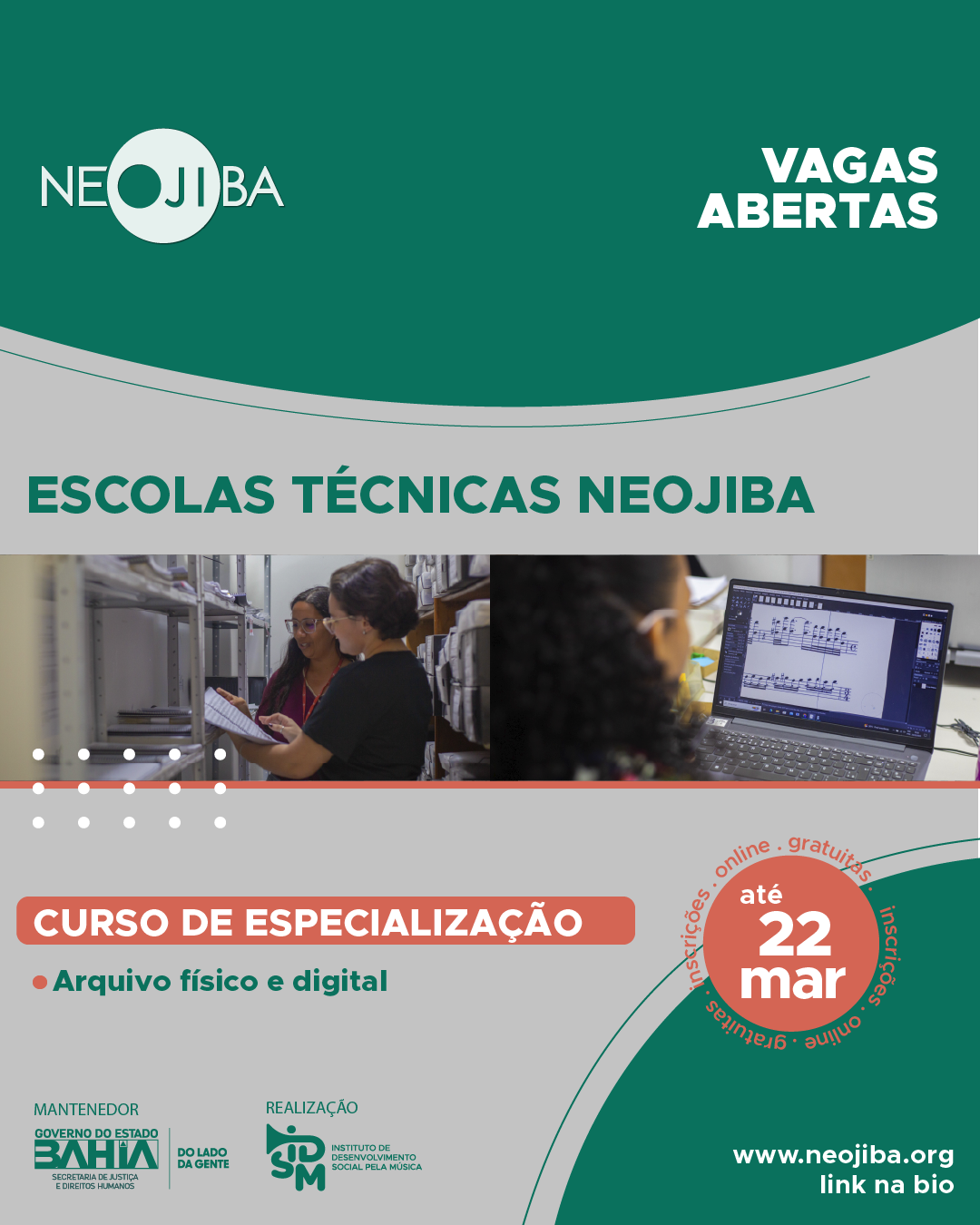 O Programa de Capacitação em Áreas Técnicas oferece vagas para a Escola de Arquivo Físico e Digital, destinadas a jovens residentes na Bahia, cursando ou com ensino médio completo. Para participar, é necessário ter concluído o Curso Básico da respectiva Escola Técnica.